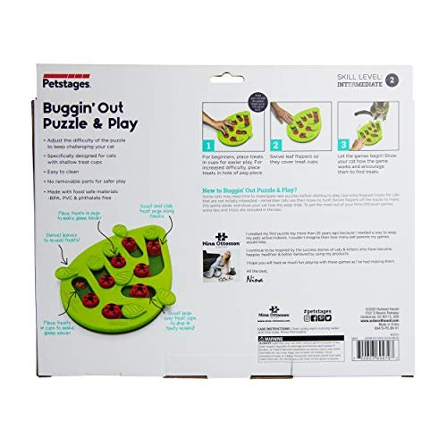 Multiple Play Options: With three different difficulty levels, this toy grows with your cat. Whether they are a novice puzzle-solver or a seasoned pro, the Buggin’ Out Puzzle can be adjusted to keep them engaged and challenged.