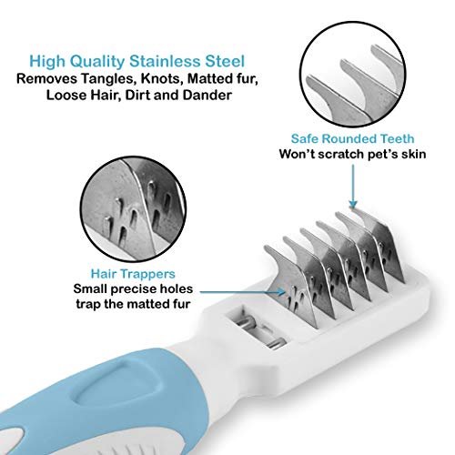 Imagine a grooming experience that leaves both you and your pet feeling happy and relaxed. This dematting tool is designed especially for cats and dogs, making it the perfect addition to your pet care routine. With its stainless steel construction, gentle teeth, and soft grip, you can easily remove matted fur and loose hair without causing discomfort to your beloved pet.
